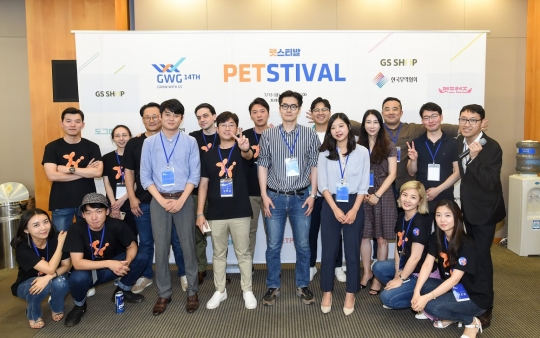 'GWG 펫스티발'에서 GS홈쇼핑 및 투자스타트업, 한국무역협회 관계자들이 기념촬영을 한 모습/GS홈쇼핑