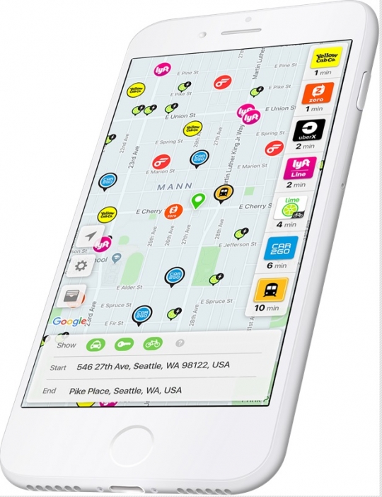 카2고(Car2Go), 집카(zipcar) 등 미국의 대표 카셰어링 업체들을 비롯해 우버(Uber), 리프트(Lyft), 마이택시(Mytaxi) 등 카헤일링 업체 라임바이크(LimeBike), 스핀(SPIN) 등 자전거 공유업체들의 비교 정보를 제공하고 있으며 버스, 전철 등 대중교통 정보도 지원한다.