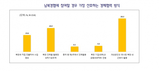 중기중앙회 214개 협동조합 설문, 선호지역은 개성, 평양