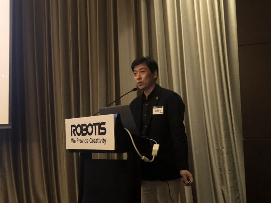 기자간담회에서 발표하는 김병수 로보티즈 대표 /배한님 수습기자