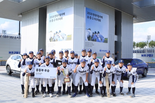 '2018 현대자동차배 초중고 야구대회'에서 중등부 우승을 차지한 마산동중 야구팀.