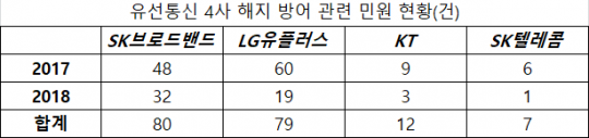 유선통신 4사 해지 방어 관련 민원 현황. /노웅래 의원실