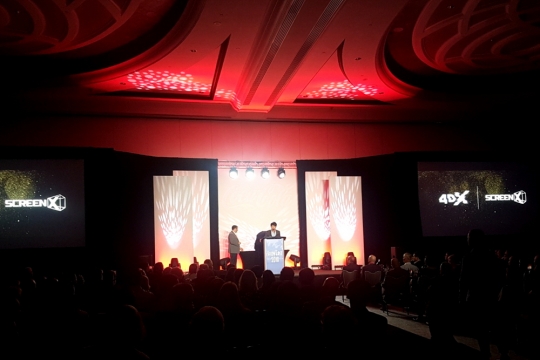 CJ CGV는 지난 25일(현지 시간) 미국 플로리다 로우스 마이애미 비치호텔에서 열린 영화 전문 전시회 '쇼이스트(ShowEeast)' 시상식에서 다면상영특별관 스크린X가 '올해의 혁신상'을 수상했다고 29일 밝혔다. '쇼이스트'는 필름 엑스포 그룹(Film Expo Group)이 주최하는 세계적인 영화 전시회 중 하나다. '올해의 혁신상'은 올해 처음 신설된 부문으로, 영화 산업에 큰 반향을 일으킬 정도의 혁신적 성과를 거둔 사람이나 기업을 선정한다.