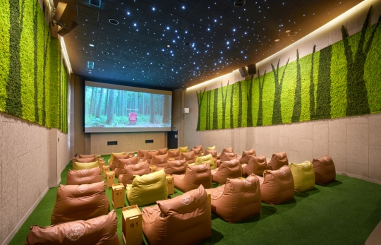 상연관은 공기 정화, 먼지 제거, 가습 효과을 겸했으며, 특히 설치된 산소발생기는 상영관 내부를 실제 숲의 산소 농도 수준으로 유지해 쾌적한 환경을 제공한다. 좌석은 총 48석으로 1인용 소파 형태의 '빈백'(36석), 쿠션감 좋은 '매트'(8석), 휴양지 느낌의 '카바나'(4석)를 취향에 따라 선택할 수 있다.