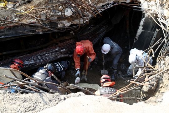 26일 오전 서울 서대문구 충정로 KT아현지사 화재현장에서 국립과학수사연구원, 경찰, 소방 관계자들이 2차 합동감식을 하고 있다. / 손진영기자 son@