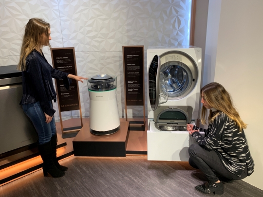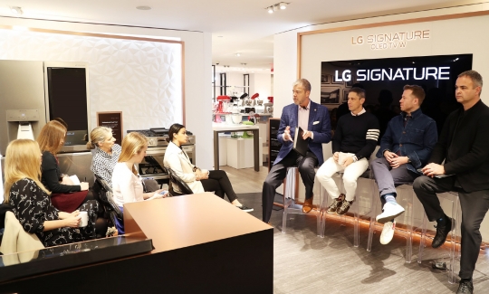 유명 디자이너들이 블루밍 데일스 LG 시그니처 매장에서 제품을 소개하고 있다. /LG전자