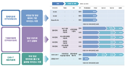 향후 항체치료제와 CAR-T세포치료제는 글로벌 대형 제약사에 라이선스 아웃을, T세포치료제는 글로벌 임상을 통해 혁신신약으로서 조기 상용화를 이룰 방침이다.