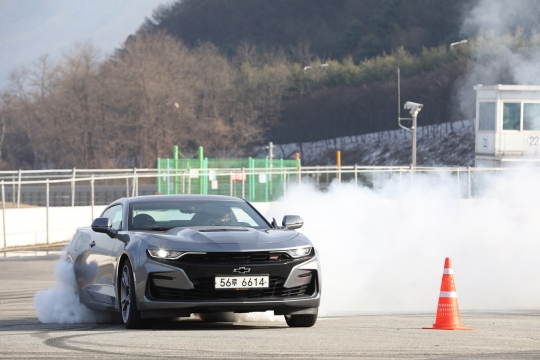한국지엠 쉐보레가 15일 경기도 용인 스피드웨이에서 개최한 고객대상 시승행사 '더 뉴 카마로SS 다이내믹 드라이빙 데이'에 참석한 100여명의 고객들이 서킷 주행과 짐카나 등 다양한 체험활동을 통해 더 뉴 카마로SS의 성능을 만끽하고 있다.