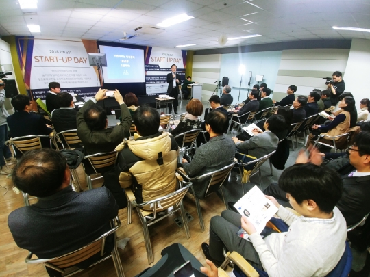 지난 18일 서울 구로동 벤처기업협회 스마트인큐베이터에서 열린 'SVI Start-Up Day'에서 쏠리드 정준 대표가 강의를 하고 있다.