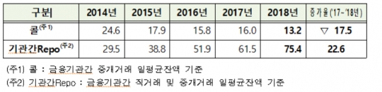 기관간Repo거래현황(단위 : 조원)/자료=한국예탁결제원