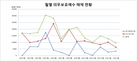 월별 의무보호예수 해제 현황/자료=한국예탁결제원