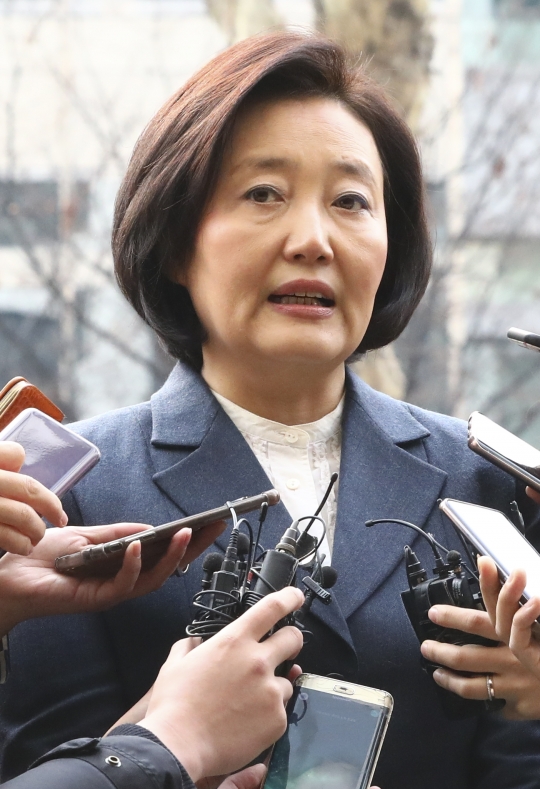 박영선 중소벤처기업부 장관 후보자가 11일 오전 서울 영등포구 여의도에 차려진 인사청문회 준비 사무실로 출근하며 취재진의 질문에 답하고 있다./뉴시스