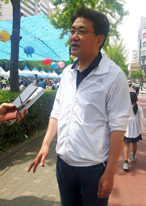 오승록 노원구청장이 4일 서울 노원구 롯데백화점 앞에서 열린 ‘2019 노원구 어린이날 축제’에 참석해 본지와의 인터뷰를 하고 있다. /김현채 기자