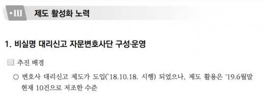 변호사 대리신고 제도가 도입 됐으나 제도 활용이 8개월이 지났는데도 현재 10건으로 저조한 수준./ 국민권익위 제공