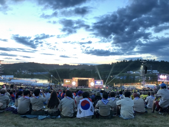 24일 웨스트버지니아에서 개최되는 "제24회 북미 세계스카우트잼버"리에 참가한 한국대표단이 개영식에 참가하여 퍼포먼스를 감상하고 있다. /사진 한국스카우트연맹