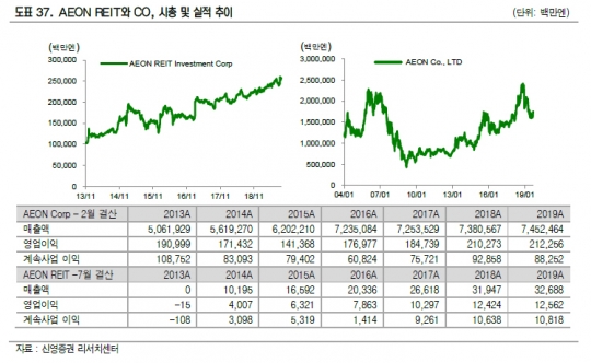 서 연구원은 "AEON REIT는 롯데그룹이 롤모델로 삼을 만한 사례"라며 "AEON REIT 역시 기업가치 상승과 더불어 탄탄한 주가흐름을 보이고 있다"고 설명했다.