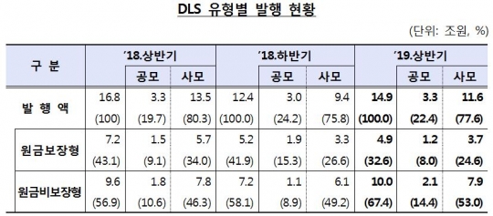 올해 상반기 중 DLS 발행액은 14조9000억원으로 전년 동기보다 1조9000억원 감소했다. 원금비보장형 발행이 소폭 증가한 반면 DLB 발행은 감소했기 때문이다.
