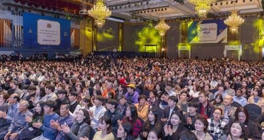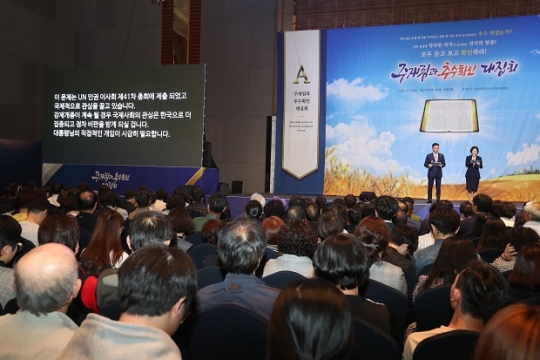신천지예수교 증거장막성전이 개최하는 '주 재림과 추수 확인 대집회'가 목회자 및 신학생 100여 명을 비롯해 기독교인 등 2천 여명이 이만희 총회장의 강의를 듣고 있다./신천지예수교회
