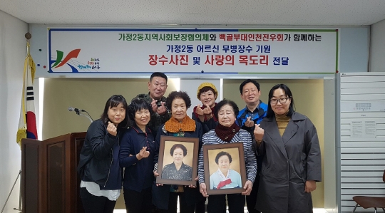 인천 서구 가정2동, 어르신 무병장수기원 장수사진 및 사랑의 목도리 전달장면.