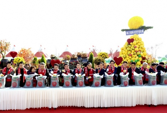 파주장단콩축제에 최종환 파주시장을 비롯한 윤후덕, 박정 국회의원 손배찬 파주시의회 의장, 시의원, 연예인 등 농업인 관계자 / 파주시