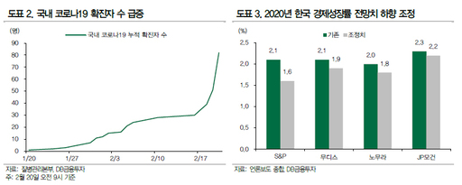 박희찬 미래에셋대우 연구원 역시 "국내에서는 코로나19 신규 확진자 수 급증으로 1사분기 역성장 가능성이 커졌다"면서 "지금 같은 상황에서는 시간을 두고 효과가 나타나는 금리 인하보다 즉각적 효력을 기대할 수 있는 재정정책적 처방이나 긴급 유동성 조치가 더 적절할 것"이라고 말했다.