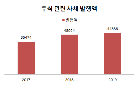 통상 CB의 만기는 2~3년이다. 때문에 올해를 시작으로 2021년, 2022년 만기가 도래하는 채권이 시장에 쌓여있다. 오는 2021년에는 4조6034억원, 2022년에는 4조1542억원의 주식 관련 사채 만기가 도래한다.