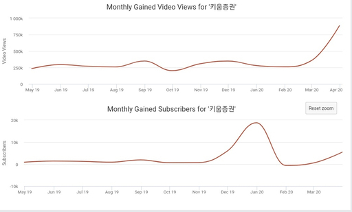 특히 증권사 중 가장 많은 구독자를 보유하고 있는 키움증권의 경우 최근 한 달 동안 동영상 조회수가 88만1300회 늘었다. 지난 2013년 개설 이후 누적 조회수(1035만3800회)의 약 9%가 최근 한 달 새 늘어났다.