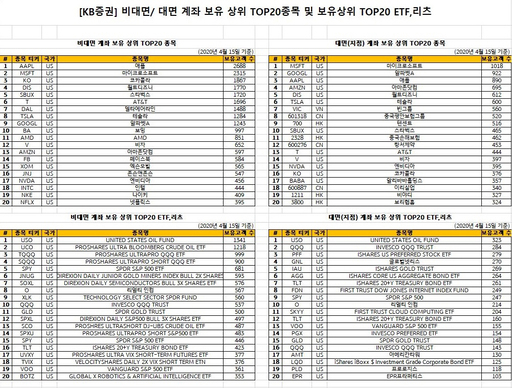 우선 KB증권 비대면 해외주식 고객들은 원유 상장지수펀드(ETF)와 애플을 가장 많이 투자한 것으로 나타났다. 또 나스닥, 스탠더드앤드푸어스500(S&P500) ETF와 마이크로소프트, 코카콜라, 스타벅스, 테슬라 등을 많이 매수했다.