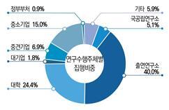 연구수행주체별 집행규모는 대학 5조원(24.4%), 중소·중견기업 4조5000억원(21.9%), 국가과학기술연구회 산하 출연(연) 4조원(19.2%), 부처 직할 출연(연) 3조7000억원(17.9%), 경제인문사회계 출연(연) 6000억원(3.0%), 대기업 4000억원(1.8%) 등 순이었다.