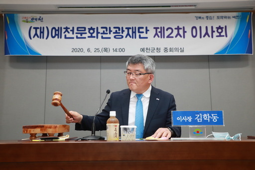 (재)예천문화관광재단(이하 '문화관광재단')은 지난 25일 오후 2시 제2차 이사회를 개최하고 2021예천세계곤충엑스포 기본방향과 재단 운영규정 및 내규 등을 의결했다.