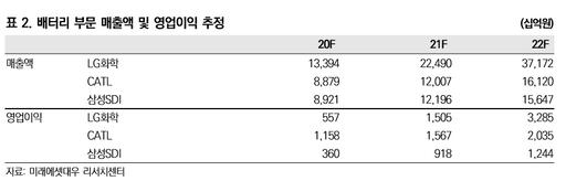 그러면서 "전기차 시장 성장이 예상을 웃돌고 선·후발 배터리 업체 간 격차가 확대하는 가운데 분사 후 배터리 사업 가치가 확대할 것"이라고 예상했다.