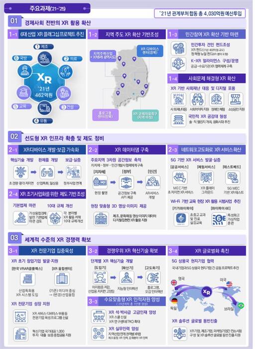 또 XR 전문기업 성장 지원을 통해 2025년까지 매출액 50억원 이상 전문기업 150개를 육성하기로 했다.