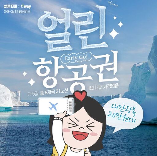 인터파크투어가 포스트 코로나를 대비해 국내 여행업계 최초로 티웨이항공과 손잡고 1년간 가격이 동결된 '얼린' 해외 왕복 항공권을 특가 판매한다고 8일 밝혔다.