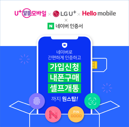 네이버는 1일부터 미디어로그 'U+알뜰모바일', LG헬로비전 '헬로모바일' 이용자가 '네이버 인증서'를 본인 인증 수단으로 활용해 비대면으로 신규 가입, 번호 이동, 기기변경 서비스를 사용할 수 있다고 밝혔다. 또 LG유플러스는 추후 적용할 계획이다.
