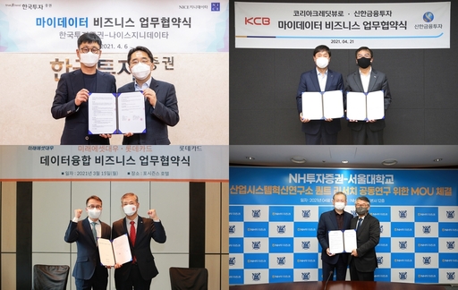 이달 들어 한국투자증권은 NICE그룹의 계열사인 NICE지니데이타와, 신한금융투자는 개인신용평가회사인 코리아크레딧뷰로와 마이데이터 사업을 위한 업무협약을 맺었다. 한국투자증권과 신한금융투자 모두 협업을 통해 데이터 분석 노하우를 활용하고, 투자자 니즈에 맞는 자산관리서비스를 제공한다는 계획이다.
