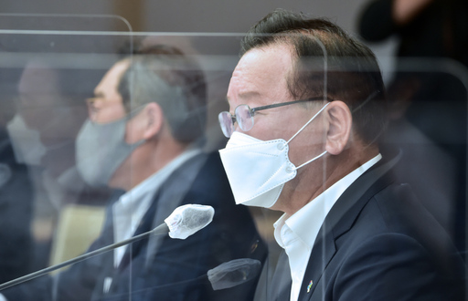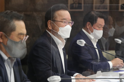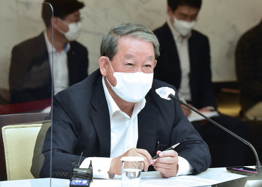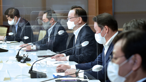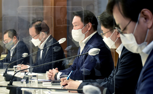 김부겸 국무총리가 3일 서울 중구 대한상공회의소를 방문해 경제계 5개 단체장과 '국무총리-경제단체장 간담회'를 갖고 있다.