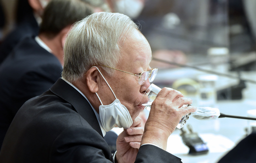 손경식 경총 회장이 3일 서울 중구 대한상공회의소에서 '국무총리-경제단체장 간담회'에 참석해 물 마시고 있다. / 손진영기자 son@