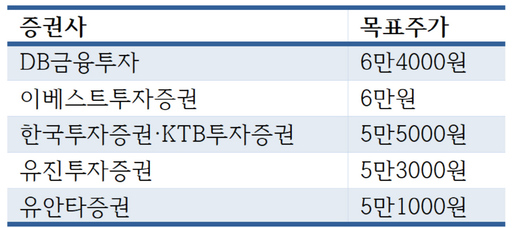 지난 4월 이후 GS건설 기업분석보고서(리포트)를 낸 주요 증권사 7곳의 목표주가 평균은 약 5만5500원이다. DB금융투자가 6만4000원으로 가장 높은 가격을 제시했다. GS건설은 전 거래일(25일) 유가증권시장에서 전날보다 2.65% 오른 4만2600원에 거래를 마쳤다.