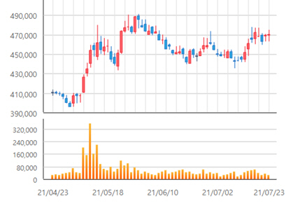 25일 한국거래소에 따르면 지난 23일 CJ제일제당의 주가는 전 거래일보다 500원(0.11%) 오른 47만원으로 장을 마감했다. 7월 12일 44만3000원이었던 주가는 2주만에 2만7000원이나 올랐다. 연초와 비교하면 주가는 22% 상승했다. 금융정보제공업체 에프앤가이드에 따르면 CJ제일제당의 2분기 예상 매출액 컨센서스는 전년 동기 대비 6.53% 증가한 6조3074억원, 영업이익 컨센서스는 전년 동기 대비 7.3% 증가한 4129억원이다.