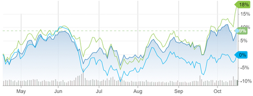 자사주를 매입하고, 배당을 늘리는 등 주주들의 이익을 제고하는 흐름도 은행주의 강점으로 작용하고 있다. JP모건체이스는 이번 분기 50억달러의 자사주를 매입했으며, 주당 배당금을 지난 0.9달러에서 1달러로 늘린 바 있다. 시티그룹도 30억달러의 자사주를 매입했고, BOA는 주당 배당금을 지난 0.18달러에서 0.21달러로 늘렸다. 한국 시장에서도 은행주에 대한 관심이 높다. 일단 금리 인상 가능성이 꾸준히 제기되고 있다. 지난 12일 금융통화위원회는 기준금리를 0.75%로 동결하면서도 11월 추가 인상을 예고했다.
