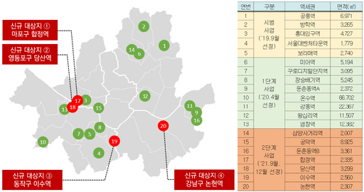 이번에 선정된 4곳은 ▲마포구 합정역 ▲영등포구 당산역 ▲동작구 이수역 ▲강남구 논현역 주변이다. 모두 역사가 신설돼 상업·업무기능 강화와 가로 활성화가 필요한 지역이라고 시는 설명했다.