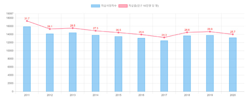 20일 통계청에 따르면 지난해 자살로 사망한 사람은 총 1만 3195명으로 하루 평균 36.1명이 스스로 목숨을 끊는 것으로 집계됐다.