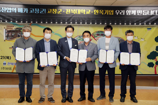21일 고창군에 따르면 이날 오후 고창군과 전북대학교, 한옥전문기업이 '한옥산업 상생발전 업무협약'을 체결했다.