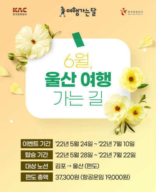 한편 에어부산은 김포-울산 노선을 매일 왕복 2회 운항했으나 5월과 6월에는 임시증편을 통해 ▲월요일, 목요일, 토요일 왕복 3회 ▲화요일, 수요일 왕복 2회 ▲금요일, 일요일 왕복 4회 운항한다. 에어부산은 5월과 6월 두 달간 김포~울산 노선을 364편 운항하면서 총 6만5520석의 좌석을 공급할 계획이다.