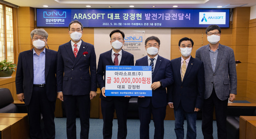 경상국립대학교는 아라소프트 강정현 대표이사가 경상국립대 발전기금 3000만 원을 출연했다고 밝혔다.