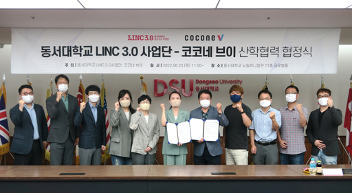 동서대학교 LINC 3.0 사업단과 COCONE V는 최근 뉴밀레니엄관 글로벌룸에서 K-게임산업을 선도할 전문인재 양성을 위한 업무 협약을 체결했다고 27일 밝혔다.