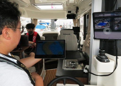 이번 시연회에서는 왕산 마리나 도크 인근을 한 바퀴 도는 수준으로 진행됐다. 약 2.5㎞가량 걸리는 최적 경로가 화면에 뜨고 '자율운항 시작' 버튼을 누르니 평균 속도는 5노트(시속 9.26㎞)로 레저보트가 항해를 시작했다. 20여 분간의 짧은 운항 거리였지만 '사람이 몰지 않는 배'는 관심을 끌기 충분했다.