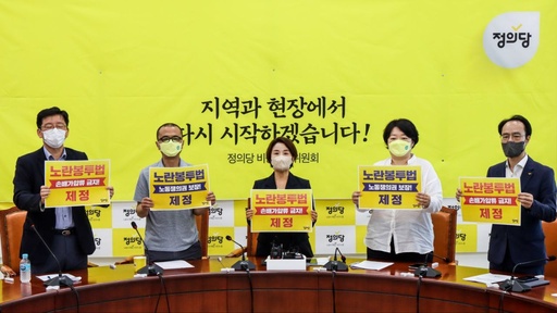 이어 "정의당은 후반기 국회 최우선 과제로 노란봉투법 제정을 추진하겠다"며 "기업의 손해배상 청구는 헌법적 권리인 파업권을 무력화할 뿐더러 많은 노동자를 죽음으로 내몰았다"고 지적했다.