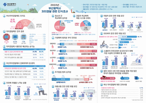 부산시 자치경찰위원회(위원장 정용환)는 28일 자치경찰제 전면 시행 1주년을 맞아 부산시민 1,000명을 대상으로 실시된 자치경찰제 관련 인식조사 결과를 발표했다.