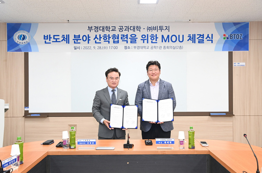 부경대 공과대학은 지난 28일 오후 공학1관 중회의실에서 비투지와 업무협약을 맺고 전략적 업무제휴를 통한 차세대 반도체 분야 산업경쟁력 강화와 연구개발 및 혁신 인재 양성에 협력하기로 했다.